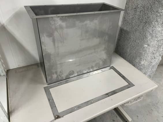 お客様から現場での据付用に、安全対策の部品加工を急いで製作してほしいとの依頼頂きました。板金は製品用のダクトとして、SUS304板厚2.0で製作。部品加工は2点マシニング加工で1点は窓開きパネルを1個。もう1点はテーパー加工を施したプレート2個。現場での工事日前に完成、納品を行いました