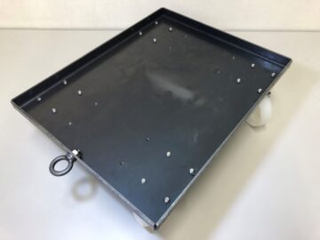量産部品メーカー様から、製品を管理するコンテナを重ねて運搬できる専用台車の製作依頼がありました。5~6段コンテナを重ねて運搬する為、板厚t3.2mmとしっかりとしたベースを製作し、Φ75mmのナイロン自在キャスターを1台当たり4個組み付けて、小回りが利く仕様とした。ハンドルは取り付けず、フックボルトを取り付けて、専用の引っぱり棒で移動できるようにした。