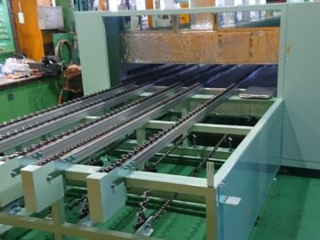 こちらは、業務用エアコン熱交換器の洗浄・乾燥機を設計・製作した事例でございます。洗浄から乾燥までを自動化させた専用機となっており、エアコンのフィン奥の細部まで脱脂洗浄、可能にした自動ラインです。当社では、本事例のように自動機の設計製作も手掛けております。