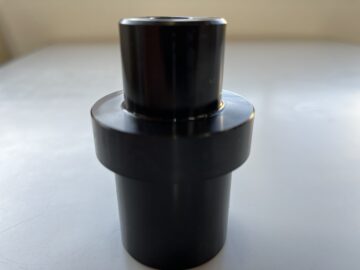 専用機の装置部品となる、支持ピン80個の製作。NC旋盤加工による外径Φ40.0h7X35L部は焼入れ・焼き戻しHRC37~42で仕上げて、Φ50.0X15Lのツバ部と、Φ30.0h7X25Lの仕上げ部で、全長75Lのて製作。内径はΦ11.0の通し穴に、片側はΦ17.5X深さ15Lの座グリ加工。切削加工、焼入れ・焼き戻し加工後は、黒染め加工にて表面処理を施して完成。