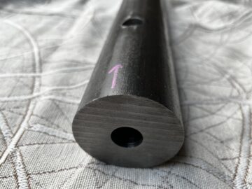径方向に端面から173mmの所に、クロスにΦ19の十文字の穴追加工をして完成。その他の素材も同様に、ガンドリル加工で、軸センターに様々の径の止まり穴加工。径方向に端面から様々な深さに、クロスに色々な径の十文字の穴追加工をして完成。